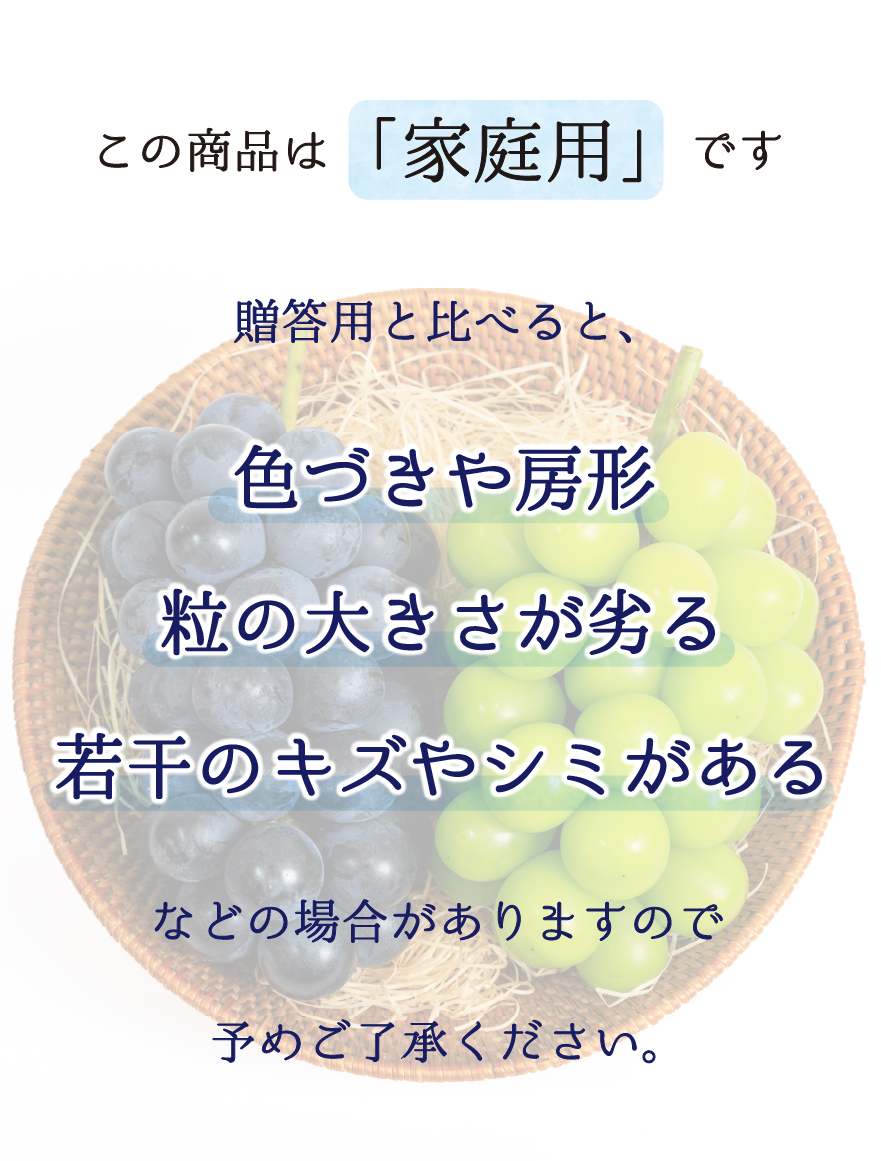 ※ご家庭用は贈答用と比べると、粒が小さかったり、房の形や色付きが悪い場合があります。
